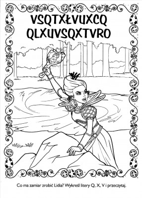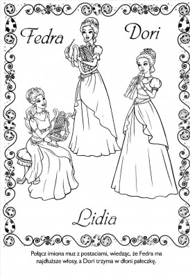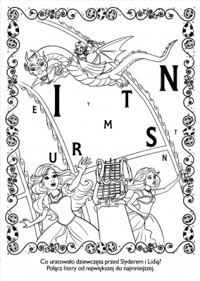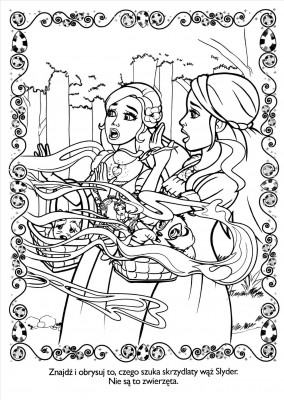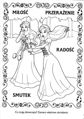 Odpowiedź nie jest trudna, biorąc pod uwagę fakt, że większość małych dziewczynek przepada zarówno za Barbie, jak i za kolorowaniem. Wśród ilustracji pojawiają się najróżniejsze sceny znane dzieciom doskonale z bajki. Znajduje się tutaj na przykład scena tłuczenia lustra przez Lidię, spacer dziewcząt do lasu czy znane sceny z Diamentowego Pałacu. Dodatkowym walotem każdej z kolorowanek z bajek jest fakt, że są one podpisane i zawierają nieskomplikowane polecenia, które sprawiają, że zabawa jest jeszcze ciekawsza. Nie chodzi tutaj tylko o wypełnienie pól odpowiednim kolorem, ale również o znalezienie poszczególnych elementów czy wykreślenie niepotrzebnych liter. Dzięki temu dzieci mają okazję gruntownie przypomnieć sobie perypetie bohaterek bajki, a przy okazji stworzyć unikatowe ilustracje będące w pewnym sensie graficznym scenariuszem.